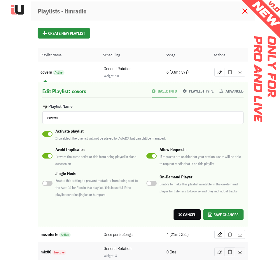 Allow Requests: Ermöglicht Hörern das Anfordern von Titeln aus dieser Playlist